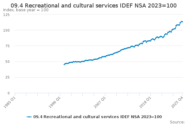 Download this time series09.4 Recreational and cultural services IDEF NSA 2023=100