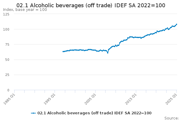 Download this time series02.1 Alcoholic beverages (off trade) IDEF SA 2023=100