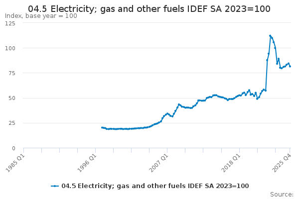 Download this time series04.5 Electricity; gas and other fuels IDEF SA 2023=100