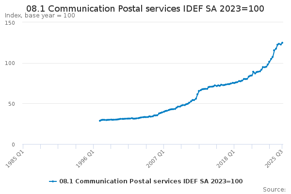 Download this time series08.1 Communication Postal services IDEF SA 2023=100