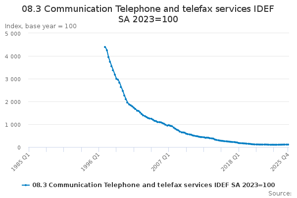 Download this time series08.3 Communication Telephone and telefax services IDEF SA 2023=100