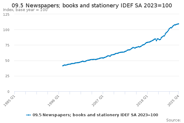 Download this time series09.5 Newspapers; books and stationery IDEF SA 2023=100