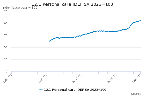 Download this time series12.1 Personal care IDEF SA 2023=100