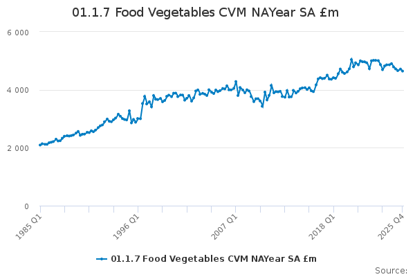 Download this time series01.1.7 Food Vegetables CVM NAYear SA £m