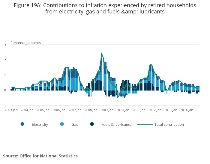 Download this chart Figure 19A: Contributions to inflation experienced by retired households from electricity, gas and fuels & lubricants