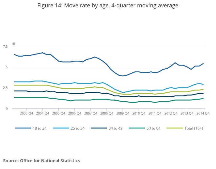 Download this chart Figure 14: Move rate by age, 4-quarter moving average
