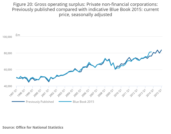 Download this chart Figure 20: Gross operating surplus: Private non-financial corporations: Previously published compared with indicative Blue Book 2015: current price, seasonally adjusted