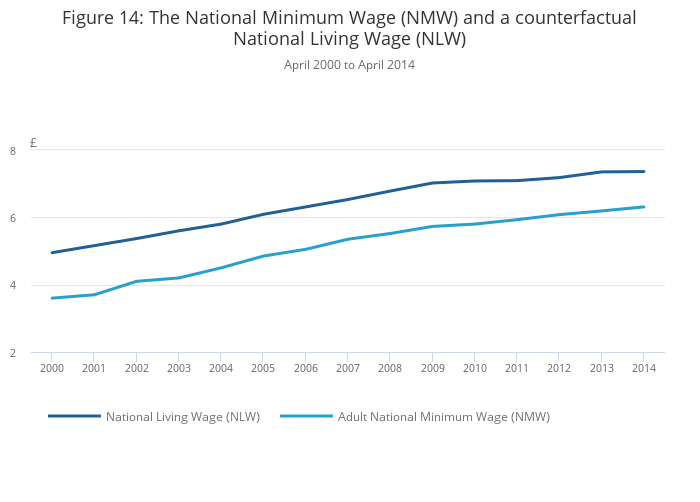 Figure 14: The National Minimum Wage (NMW) and a counterfactual National Living Wage (NLW)