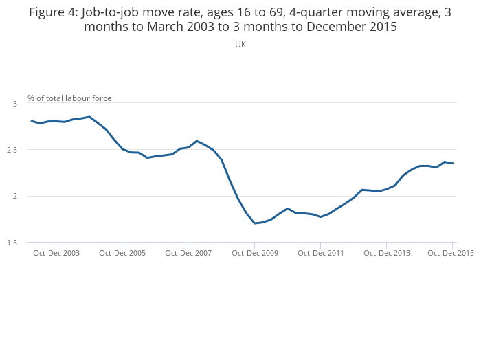 Download this chart Figure 4: Job-to-job move rate, ages 16 to 69, 4-quarter moving average, 3 months to March 2003 to 3 months to December 2015