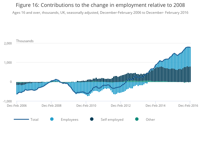Ages 16 and over, percentage points, UK, December-February 2005 to December- February 2016
