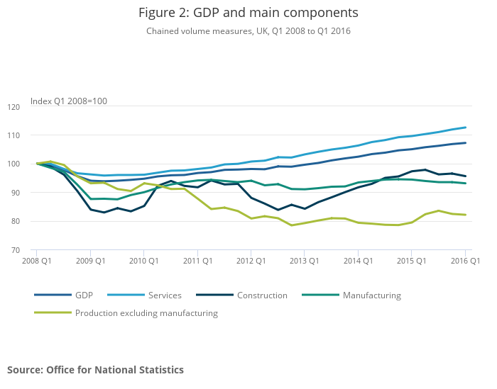 Chained volume measures, UK, Q1 2008 to Q1 2016