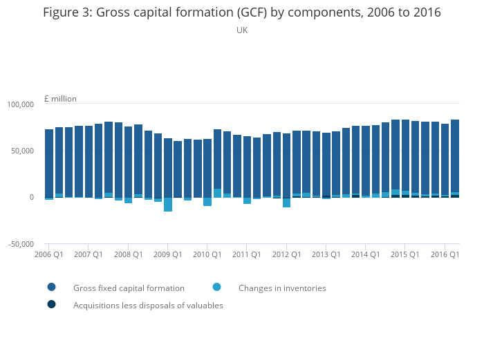 This section provides a brief summary of the main components of gross capital formation (GCF), the highest level aggregation of investment activity in the expenditure measure of gross domestic product (GDP (E)). The expenditure measure is released with the second estimate of GDP each quarter. This section provides some context for GCF data and its component parts prior to the first publication of GDP (E) data for the post-referendum period, on 25 November 2016.