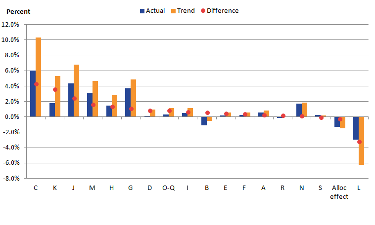 | Business Services & Finance1 | 3.9 | 2.6 | 0.7 | 0.6 | 0.5 | -0.1 | 0.3 | 0.2 | 0.1 | .. |