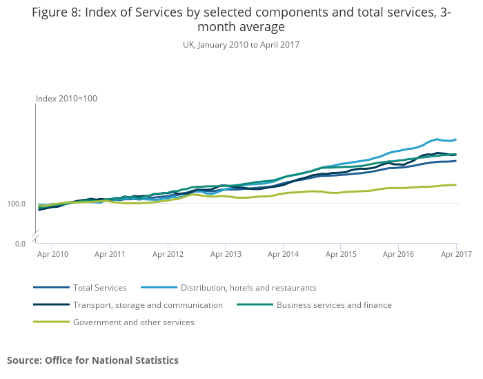 “Services output in April 2017 was up slightly on the month, with the largest contribution to the month-on-month growth coming from the retail trade.”