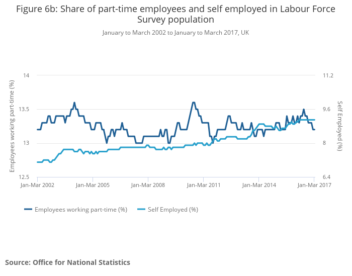 Download this chart Figure 6b: Share of part-time employees and self employed in Labour Force Survey population
