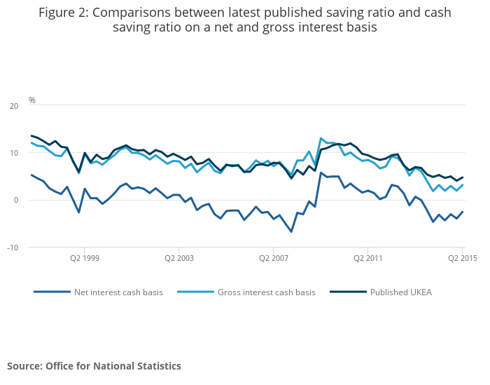 On a net basis, the cash saving ratio has remained negative between Quarter 3 (July to September) 2013 to Quarter 2 (April to June) 2015.