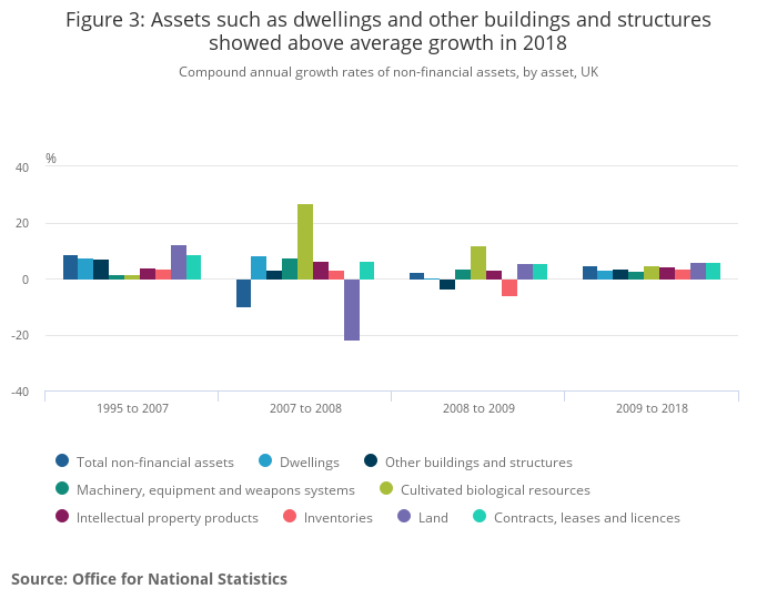 Download this chart Figure 3: Assets such as dwellings and other buildings and structures showed above average growth in 2018