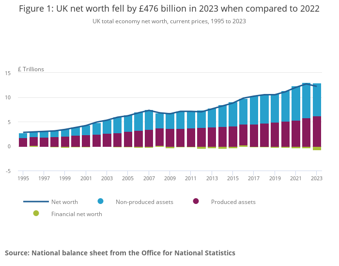 Figure 1: UK net worth fell by £476 billion in 2023 when compared to 2022