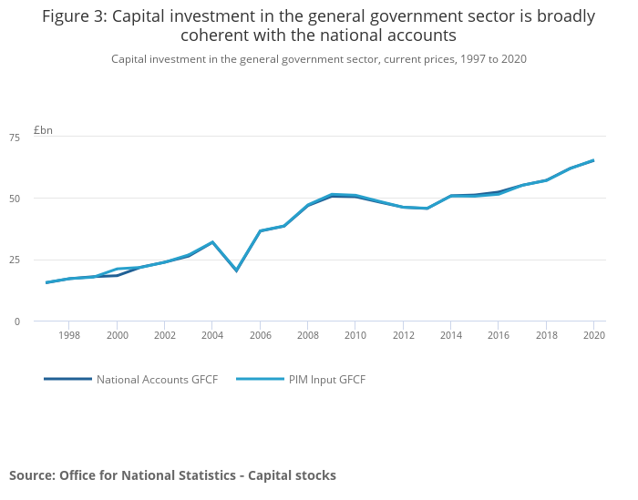 The Office for National Statistics (ONS) aims to align the gross fixed capital formation (GFCF) series used in the national accounts and the production of capital stocks and consumption of fixed capital estimates, for all sectors. Another aim is to provide greater clarity on how the concepts captured as fixed assets within the national accounts relate to other assets outside the production boundary, including natural and human capital.