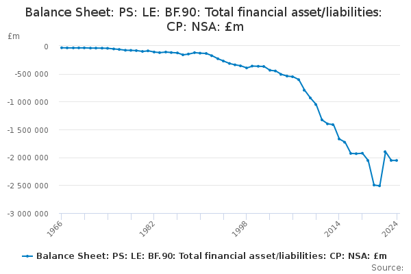 Download this time seriesBalance Sheet: PS: LE: BF.90: Total financial asset/liabilities: CP: NSA: £m