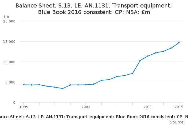 Download this time seriesBalance Sheet: S.13: LE: AN.1131: Transport equipment: Blue Book 2016 consistent: CP: NSA: £m