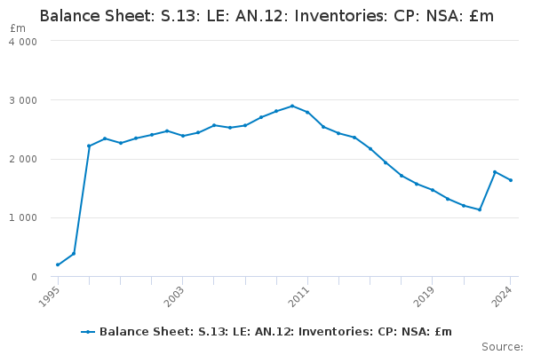 Download this time seriesBalance Sheet: S.13: LE: AN.12: Inventories: CP: NSA: £m