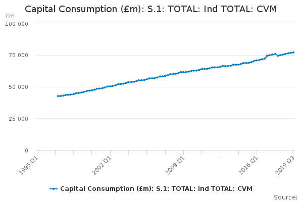 UK Economic Accounts table 1.1.12 (Consumption of fixed capital): Due to system issues, ONS were unable to publish quality assured capital consumption data for 2018 and 2019 for the Non-financial corporations, Financial corporations and Households and Non-profit institutions serving households sectors at the time of publication. Updated data now shown in this table for 2018 and 2019 have been reviewed and are now fully consistent with the Quarterly National Accounts publication.