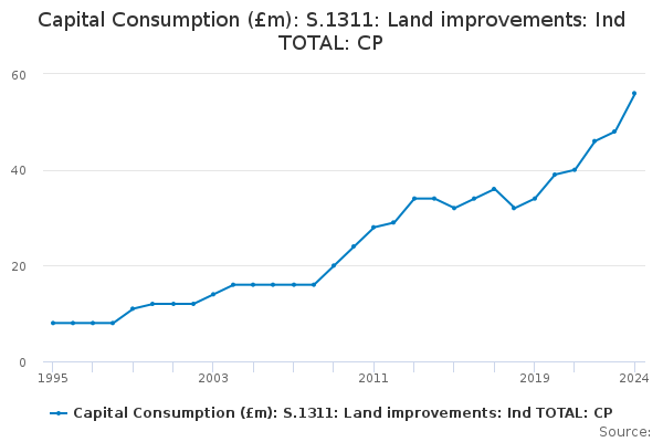 Download this time seriesCapital Consumption (£m): S.1311: Land improvements: Ind TOTAL: CP