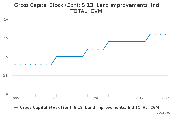 Download this time seriesGross Capital Stock (£bn): S.13: Land improvements: Ind TOTAL: CVM
