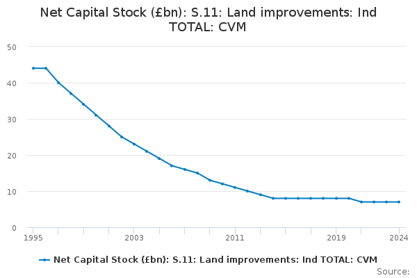 Download this time seriesNet Capital Stock (£bn): S.11: Land improvements: Ind TOTAL: CVM