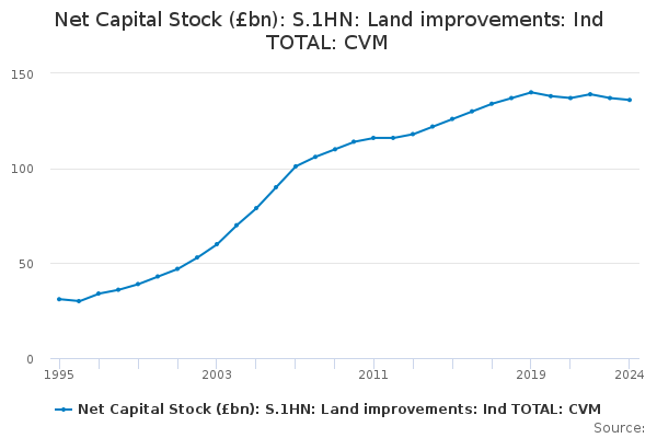 Download this time seriesNet Capital Stock (£bn): S.1HN: Land improvements: Ind TOTAL: CVM
