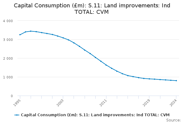 Download this time seriesCapital Consumption (£m): S.11: Land improvements: Ind TOTAL: CVM