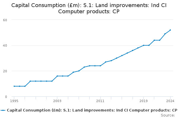 Download this time seriesCapital Consumption (£m): S.1: Land improvements: Ind CI Computer products: CP