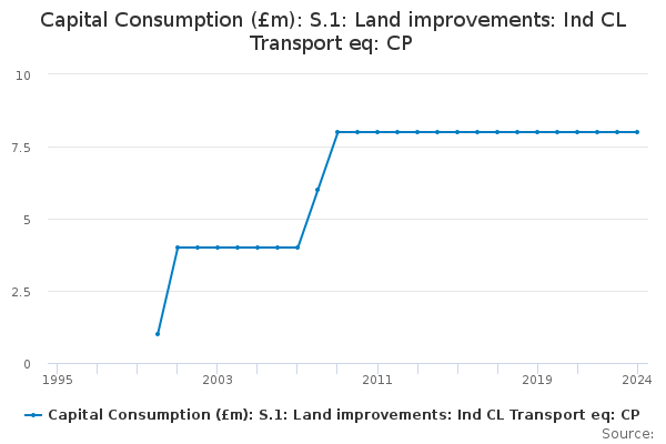 Download this time seriesCapital Consumption (£m): S.1: Land improvements: Ind CL Transport eq: CP