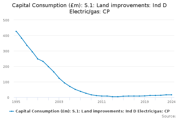 Download this time seriesCapital Consumption (£m): S.1: Land improvements: Ind D Electric/gas: CP