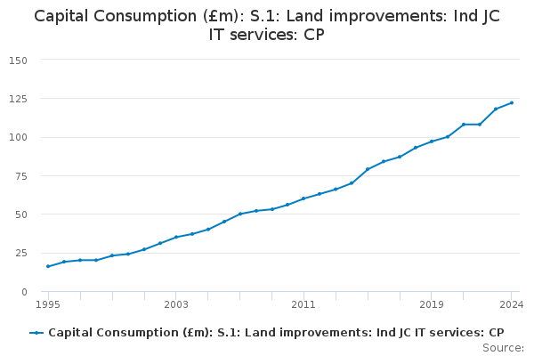 Download this time seriesCapital Consumption (£m): S.1: Land improvements: Ind JC IT services: CP