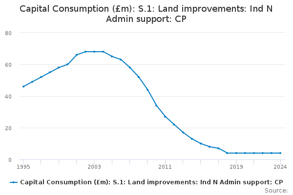 Download this time seriesCapital Consumption (£m): S.1: Land improvements: Ind N Admin support: CP