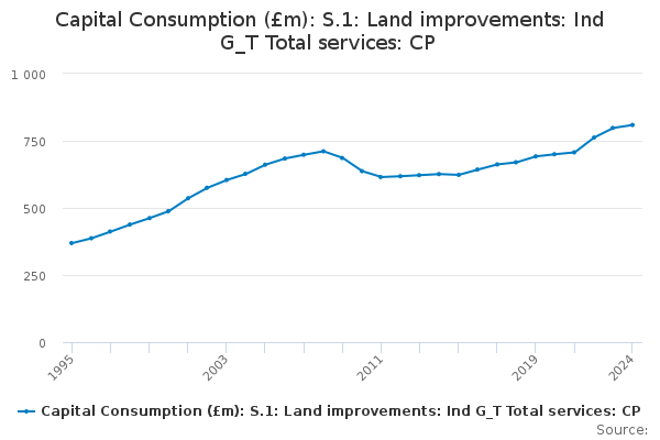 Download this time seriesCapital Consumption (£m): S.1: Land improvements: Ind G_T Total services: CP