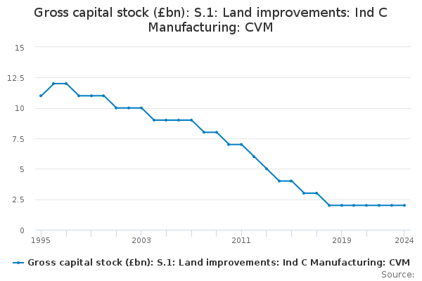 Download this time seriesGross capital stock (£bn): S.1: Land improvements: Ind C Manufacturing: CVM