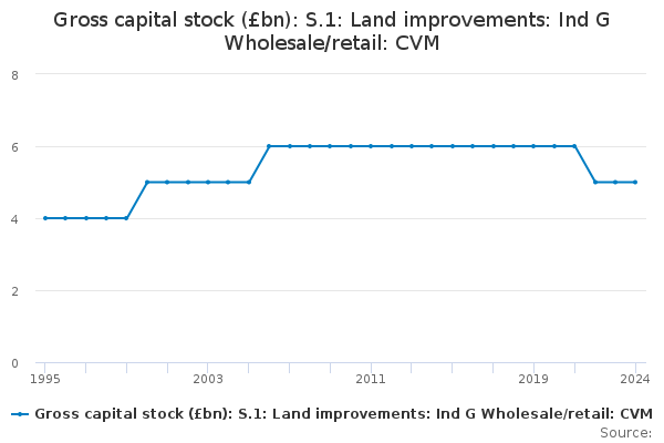 Download this time seriesGross capital stock (£bn): S.1: Land improvements: Ind G Wholesale/retail: CVM