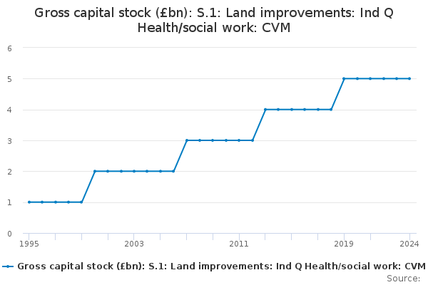 Download this time seriesGross capital stock (£bn): S.1: Land improvements: Ind Q Health/social work: CVM