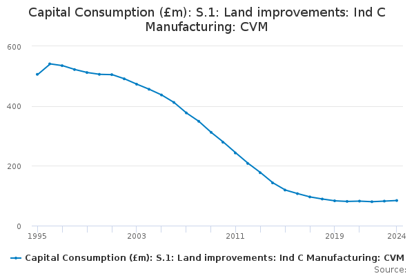 Download this time seriesCapital Consumption (£m): S.1: Land improvements: Ind C Manufacturing: CVM