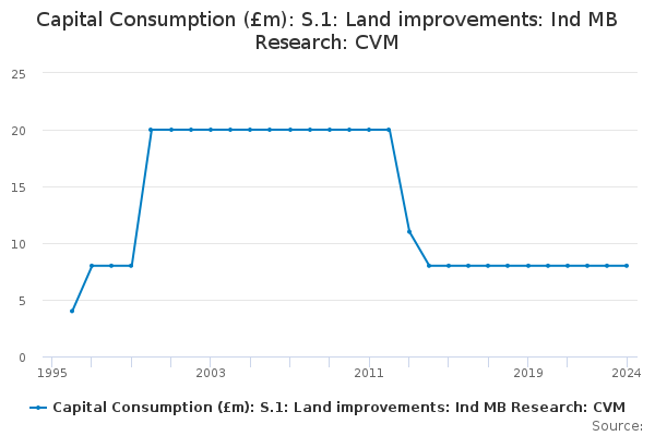Download this time seriesCapital Consumption (£m): S.1: Land improvements: Ind MB Research: CVM