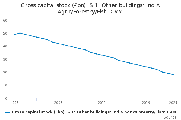 Download this time seriesGross capital stock (£bn): S.1: Other buildings: Ind A Agric/Forestry/Fish: CVM