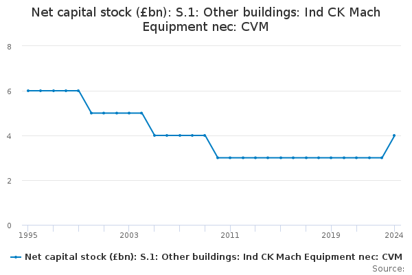 Download this time seriesNet capital stock (£bn): S.1: Other buildings: Ind CK Mach Equipment nec: CVM