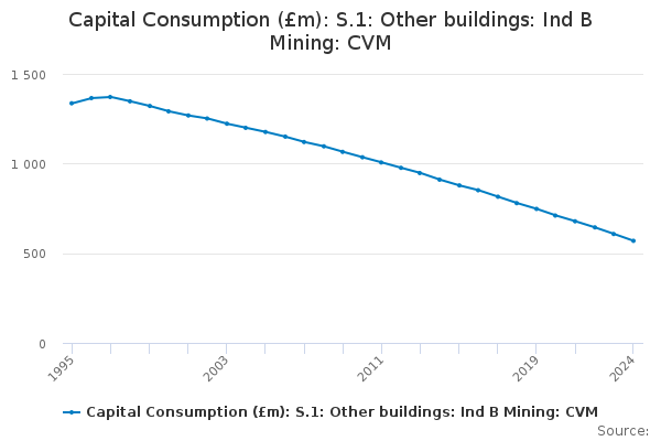 Download this time seriesCapital Consumption (£m): S.1: Other buildings: Ind B Mining: CVM