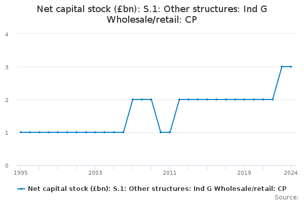Download this time seriesNet capital stock (£bn): S.1: Other structures: Ind G Wholesale/retail: CP