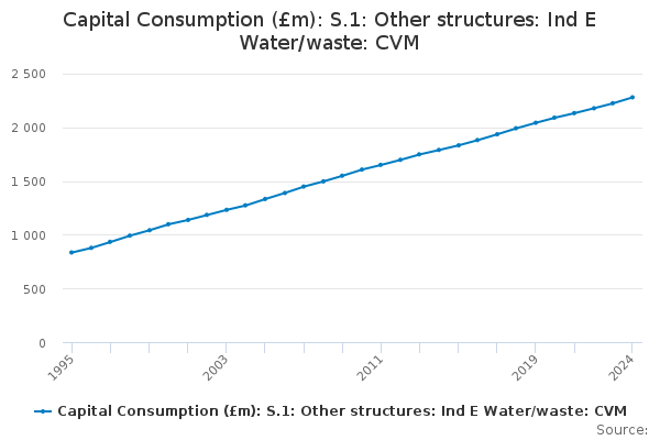 Download this time seriesCapital Consumption (£m): S.1: Other structures: Ind E Water/waste: CVM