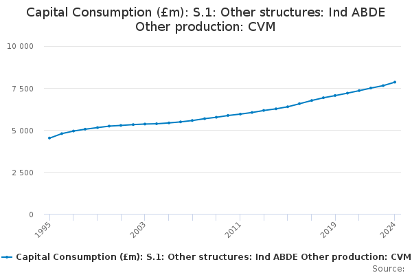 Download this time seriesCapital Consumption (£m): S.1: Other structures: Ind ABDE Other production: CVM