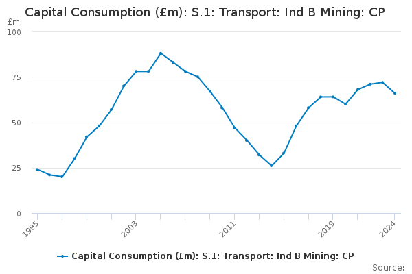 Download this time seriesCapital Consumption (£m): S.1: Transport: Ind B Mining: CP